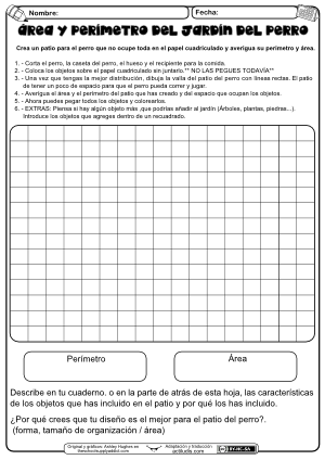 Se trata de una actividad de la página norteamericana Teachers pay teachers.com que he traducido, para trabajar el cálculo de perímetros y áreas a través de recuadros. El segundo archivo es la misma actividad pero resumida para gastar menos en fotocopias.