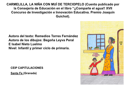 A continuación os dejo un cuento, dentro de del proyecto sobre cultura gitana, en el que estoy trabajando y publicado por la Consejería de Educación de la Junta de Andalucía en el libro “¡¡Comparte el agua!! XVII dentro del concurso de Investigación e Innovación Educativa. Premio Joaquín Guichot.