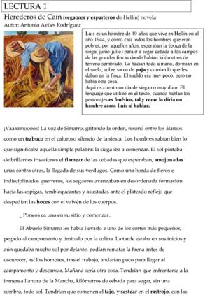 Antonio Avilés Rodríguez. Maestro de P. T. en el I.E.S Izpisúa Belmonte de Hellín (Albacete), nos envía un trabajo de comprensión lectora basado en un texto de una novela que publicó hace unos años, como homenaje a sus padres, titulada «Herederos de Caín».