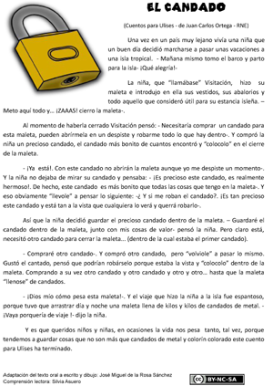 Soy un fiel seguidor de Juan Carlos Ortega y en especial de sus «Cuentos para Ulises» que todos los fines de semana en el programa de Pepa Fernández «No es un día cualquiera» nos relata y divierte. Por ello he iniciado, con la colaboración de Silvia Asuero, una serie de lecturas de comprensión, en las que se ha transcrito el audio a texto en aquellos cuentos, que en mi opinión son más aprovechables en el colegio, bien por los valores que transmiten o por lo motivador de su lectura. Recuerda que todos los cuentos tienen sus correspondiente audio en el apartado de comprensión oral.