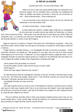 Nueva adaptación escrita del cuento «El país de la alegría» cuenta con preguntas de comprensión lectora para los tres ciclos.