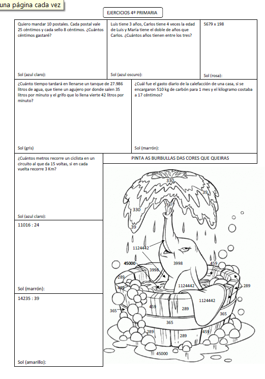 Autora Beatriz Harguindey García de Rianxo (A Coruña) nos envía una nueva ficha en castellano y gallego para trabajar problemas en 4º de Primaria.