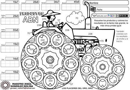 Productos mediante el algoritmo ABN de dos cifras por una. La autoría de ésta serie es de Jesús González Molina Esc. Primaria “Vicente Guerrero” de Los Placeres del Oro, Guerrero, México.