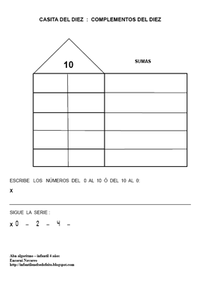 Encarni Navarro Gutiérrez del CEIP “Carmen Sedofeito” de Chiclana (Cádiz). nos envía varias fichas para trabajar los complementarios del 10 en Infantil y que ella utilizas en su clase de 4 años dando muy buen resultado.