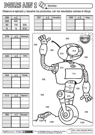 Jesús González Molina de la Esc. Prim. Vicente Guerrero de Los Placeres del Oro, Guerrero, México, colaborador de Actiludis, nos envía tres fichas para trabajar los dobles como introducción al producto por 2.