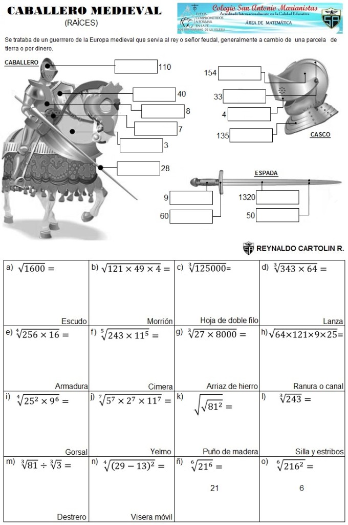 Tres fichas para calcular raíces cuadradas, cúbicas, cuartas, quintas… de un número, así como operaciones con radicación.