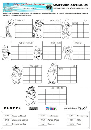 Tres fichas para trabajar operaciones con números decimales, realiza por Reynaldo Oswaldo Cartolín Rosado Profesor de Matemática – Física desde el Colegio San Antonio Marianistas del Callao, Lima, (Perú). Dos de ellas las he adaptado con la rejilla ABN y la otras aunque no la tiene (por razones de espacio) se puede realizar igualmente con éste algoritmo.