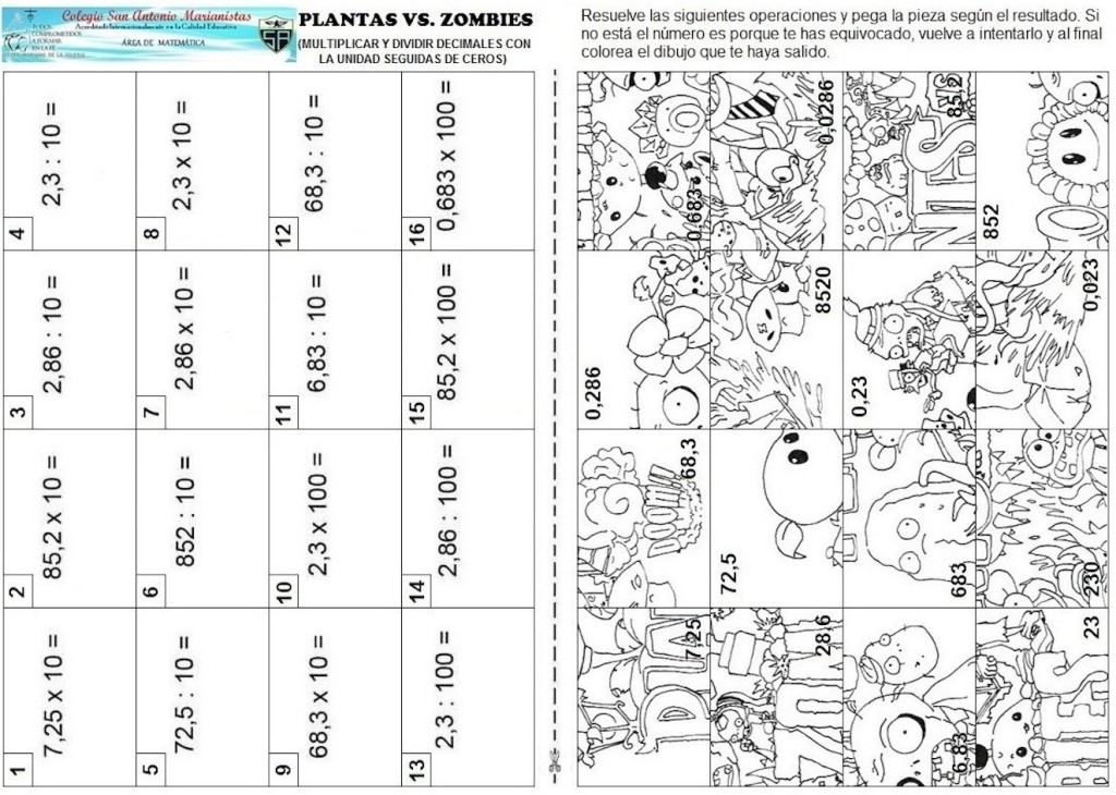 Con ésta ficha trabajamos producto y división de número decimales por la unidad seguida de ceros.
