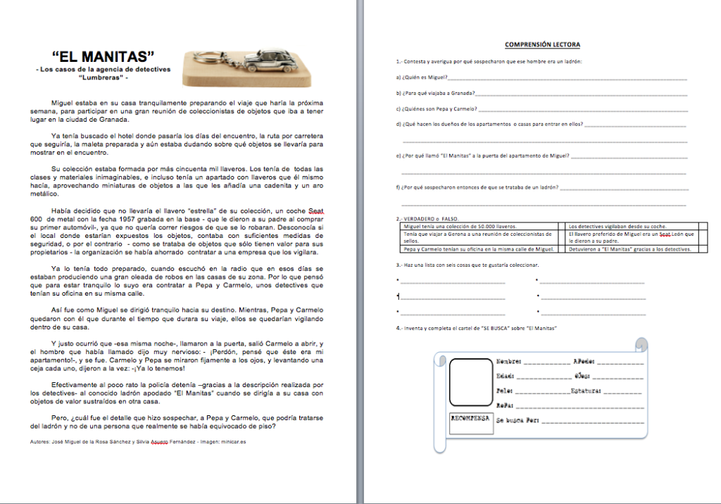Iniciamos Silvia Asuero y yo una nueva serie de lecturas cortas con comprensión lectora dedicada a uno de los temas que más éxito han tenido entre el alumnado: «Las lecturas de detectives». Son lecturas al estilo de «Tras la pista» y de «Con Misterio«, pero a la que le hemos añadido actividades de comprensión lectora que les ayudarán a solucionar el caso.