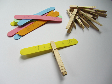 Procedimiento: Poner en los depresores las operaciones, con una de los factores sin dibujar. En pinzas de la ropa numerar cada una, para que el alumnado vaya colocando cada pinza en el espacio de la operación correspondiente.