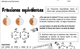 Añadimos dos fichas más a éste artículo, que nos envía nuestro colaborador Jesús González Molina de la Escuela Primaria Vicente Guerrero, desde Los Placeres del Oro, Guerrero, México. Se trata de una primera ficha explicativa de fracciones equivalentes que complementa la ficha de «Tablas de fracciones con regletas» publicada anteriormente y una segunda … Sigue leyendo Fracciones equivalentes