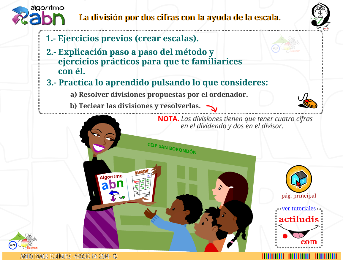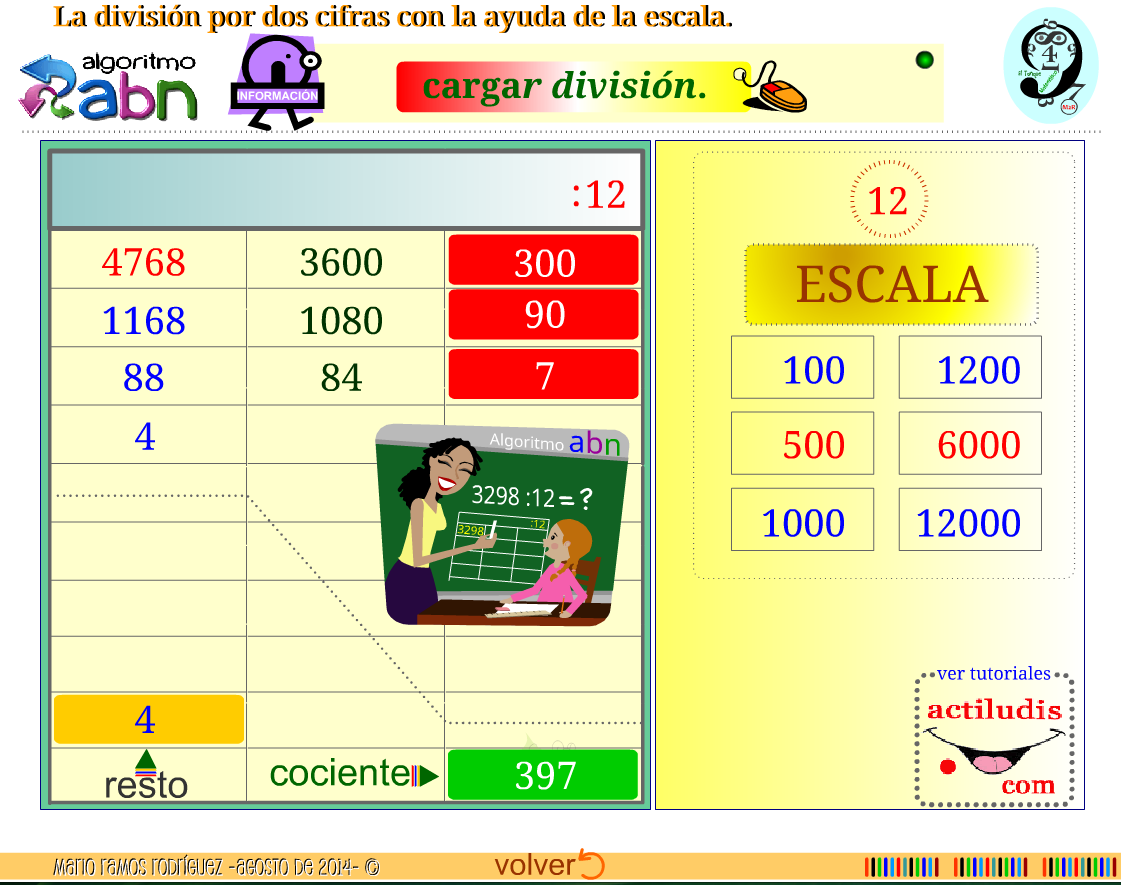 Mario Ramos Rodríguez de la Web «El tanque matemático» de «Los Silos» en Tenerife ha tenido la gentileza de trabajar éste verano en la creación de la aplicación para el aprendizaje y la práctica de la división por dos cifras mediante el algoritmo ABN.