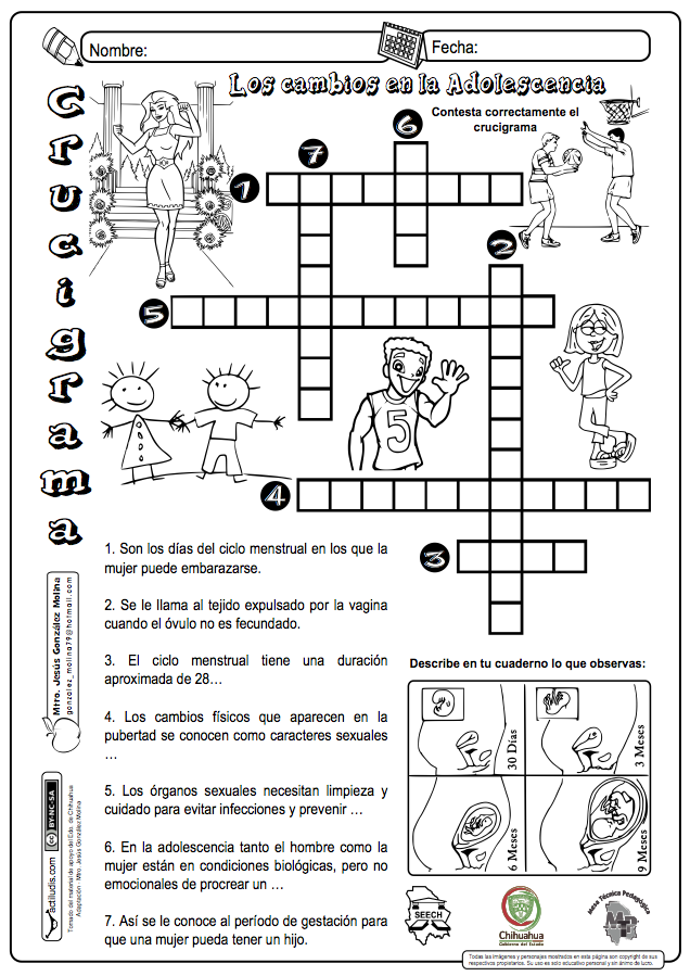 Se trata de un puzle en el que se le hace preguntas sobre los contenidos estudiados en relación al aparato reproductor humano y los cambios sexuales que tienen lugar en la adolescencia.