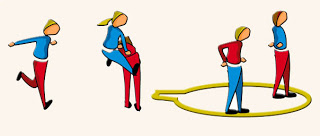 Tras el salto y una vez dentro de la «bombilla» puedes dar un nuevo salto, para evitar que el próximo que salte choque contigo, y permaneces quito en ese lugar, hasta el siguiente salto de un compañero, momento que puedes aprovechar para dar un nuevo salto que te aleje de quien permanece encorvado. Estos sucesivos saltos no pueden sacarte del espacio dibujado de la «bombilla»