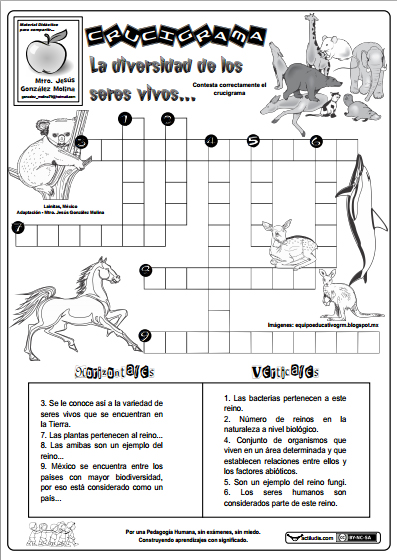 Jesús González Molina de la Escuela Primaria Vicente Guerrero, desde Los Placeres del Oro, Guerrero, México nos envía una ficha con la que repasar la diversidad del mundo animal mediante un crucigrama con definiciones del grupo de seres vivos al que pertenece dicha definición.