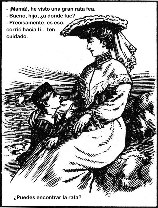 La siguiente lámina corresponde a una serie perteneciente a una colección de imágenes de Pellerin D’Epinal, con unos dibujos y colores característicos de época. Esta en concreto, en la que he traducido el texto que contiene, un niño le dice a su madre que ha visto una rata grande y fea y que lo malo es que se ha ido hacia ella.