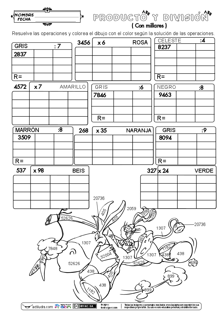 Una nueva ficha para trabajar el producto y la división sin decimales y hasta los millares. Os la dejo en formato ABN.