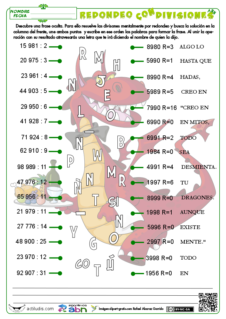 La siguiente ficha al igual que otras anteriores que he publicado están pensadas para realizarlas mediante cálculo pensado. Pueden realizarse tanto para el algoritmo tradicional como para el algoritmo ABN, aunque resultarán mucho más fáciles de realizar mediante cálculo pensado para el alumnado ABN.