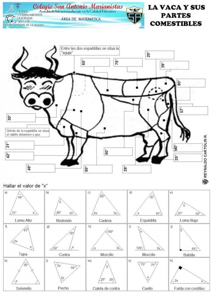 Tu estás aquí: Inicio › Cálculo de ángulos interiores en un triángulo › Vaca y sus partes – angulos Vaca y sus partes – angulos Deja una respuestaTu dirección de correo electrónico no será publicada. Los campos obligatorios están marcados con *Comentario * Nombre * Correo electrónico * Web Recibir un correo electrónico con cada nueva entrada. Δ