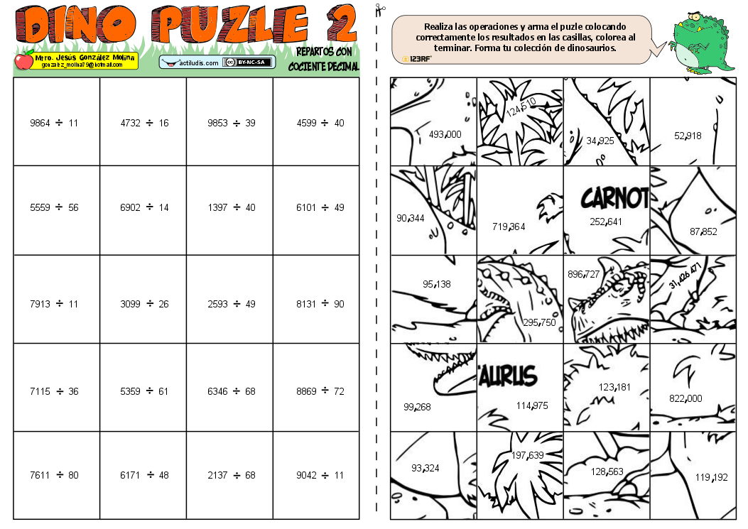 Una nueva ficha ficha elaborada por Jesús González Molina de la EscuelaPrimaria Vicente Guerrero, desde «Los Placeres del Oro», Guerrero, México, que nos prepara una serie de divisiones para obtener decimales en el cociente. Al aparecer sólo la operación sin formato permite ser trabajada mediante distintos algoritmos de resolución.