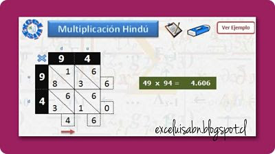 Luis Enrique Millán Valdovinos, Profesor de Educación Media en Matemáticas y Computación de la Universidad Mayor de Chile,nos envía una nueva versión del programa para trabajar la multiplicación mediante el método hindú. En el programa dispones de un botón de ayuda para explicar el método, muy sencillo y rápido de hacer y al final del artículo dejamos un vídeo explicativo.