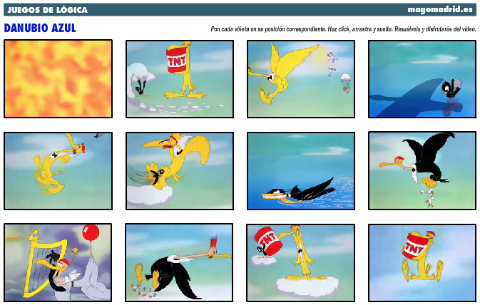 Alfonso Quinto en su blog «Juegos de lógica» ha preparado un juego de ordenar una secuencia lógica extraída de «A Corny Concerto (1943)» un corto de dibujos animados clásicos con la música de Johann Strauss, «Cuentos de los bosques de Viena» y «Danubio Azul», y en el que aparece los personajes: Elmer Gruñón, Porky, Bugs Bunny y un joven Pato Lucas.