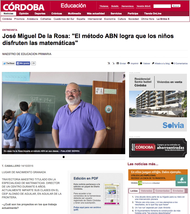 Hoy en el «Diario Córdoba» del Grupo Zeta y dentro del suplemento de Educación se ha publicado una pequeña entrevista que me hicieron hace unos días.