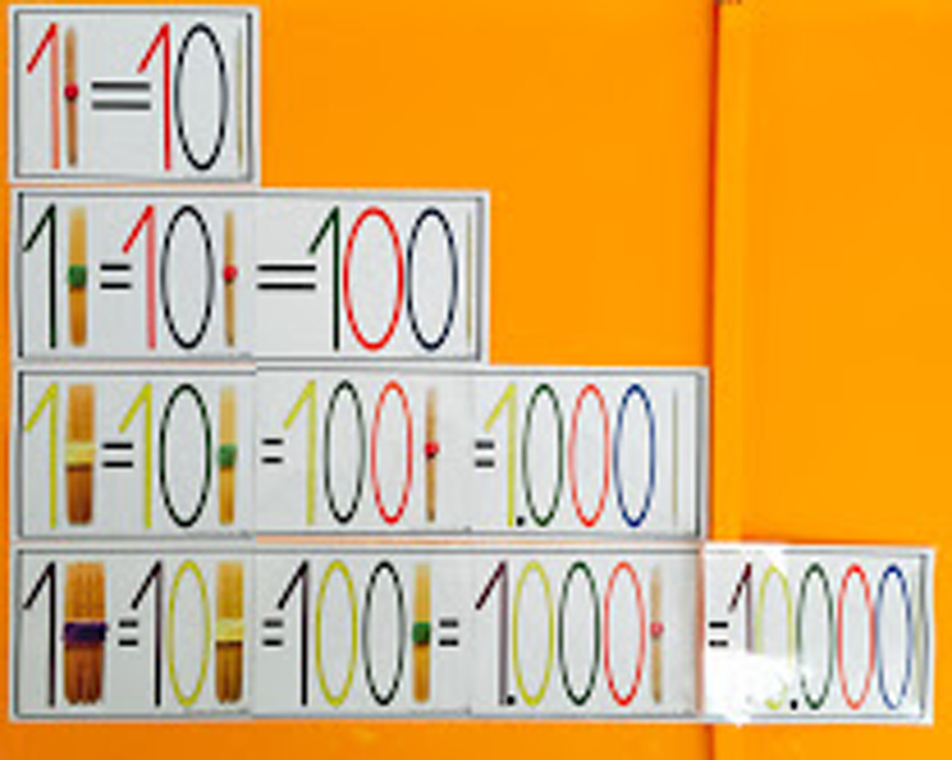 Se trata de representaciones gráficas con palillos en las que se establecen las equivalencias entre los distintos órdenes de unidades.