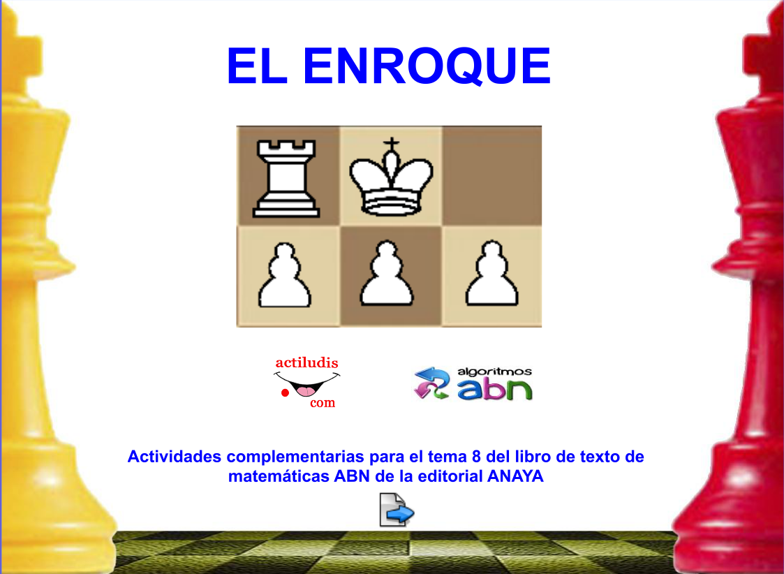 En el siguiente archivo podéis descargar en formato digital para la PDI las actividades de ajedrez que complementan las que podéis encontrar en el tema 8 del libro de Anaya (iremos añadiendo todos conforme los vayamos creando) y en la que se trabaja el enroque. De esta forma el alumnado podrá utilizar este recursos y profundizar en el aprendizaje del ajedrez.