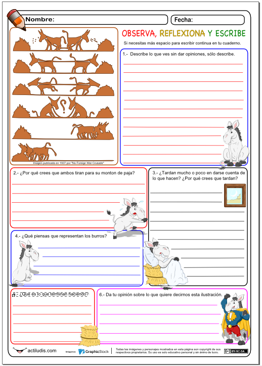Con esta actividad y a través de una serie de preguntas sobre lo que ven en ella vamos guiando hacia la creación de un texto que englobe lo observado así como el poder llegar a dar una opinión crítica del mismo.