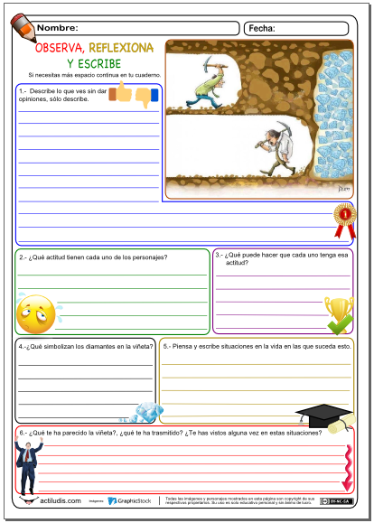 Con esta actividad y a través de una serie de preguntas sobre lo que ven en ella vamos guiando hacia la creación de un texto que englobe lo observado así como el poder llegar a dar una opinión crítica del mismo.