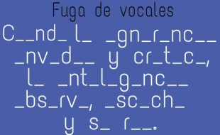 Se trata de varias actividades propuestas desde la web «Unidad de memoria» en las que en unas hay que completar las frases con las vocales que faltan y en otras hay que descifrar el mensaje a partir de un texto en el que se han sustituido las vocales por consonantes … Sigue leyendo Fuga de vocales