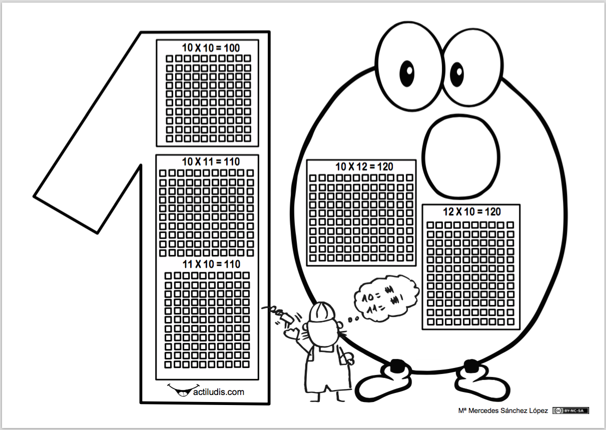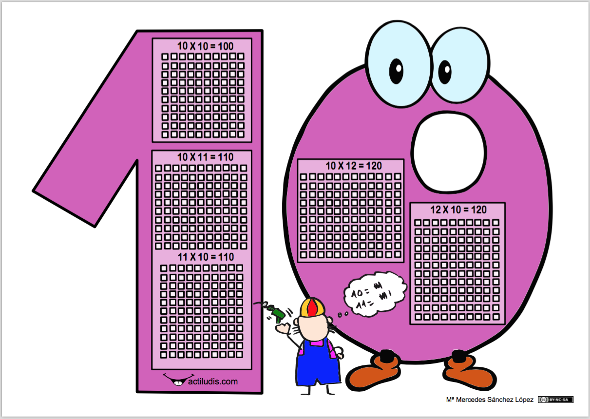 Maria Mercedes Sánchez López del CEIP «Luís Víves» de Dálias (Almería), me envió este curso pasado unos ficheros con las tablas de multiplicar representadas gráficamente y con la propiedad conmutativa. A partir de su diseño he completado hasta la tabla del doce en todas ellas y os la dejo en este artículo.
