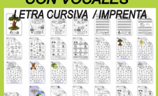 Vocales con letra cursiva y con letra de imprenta