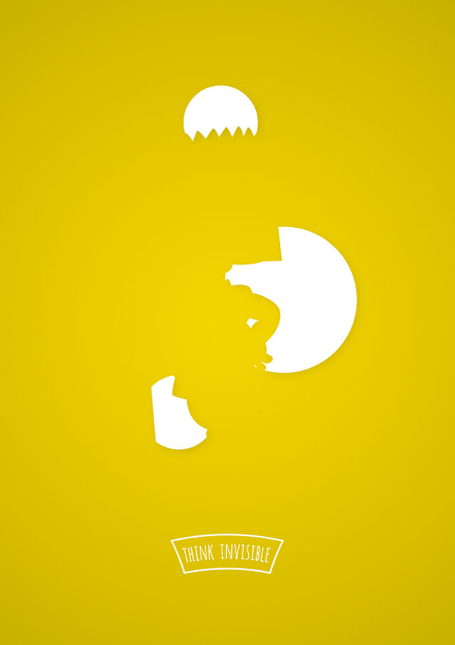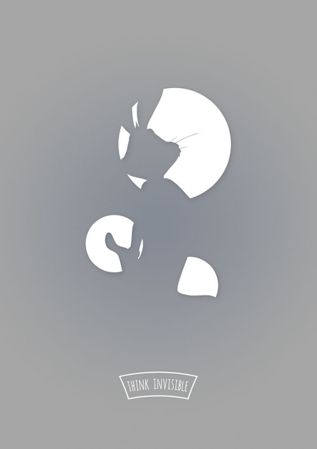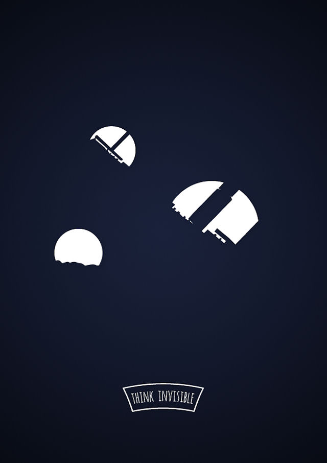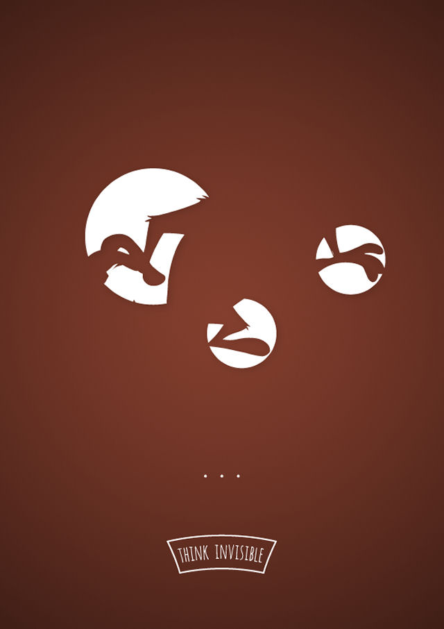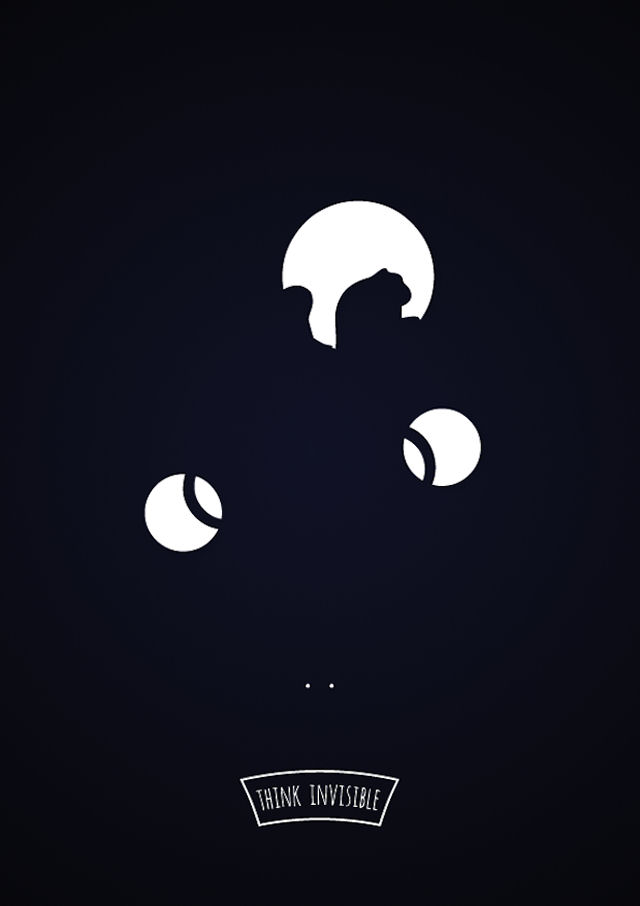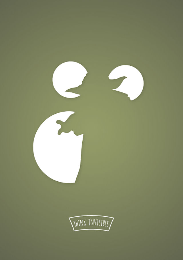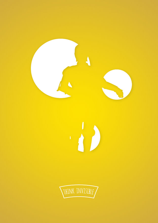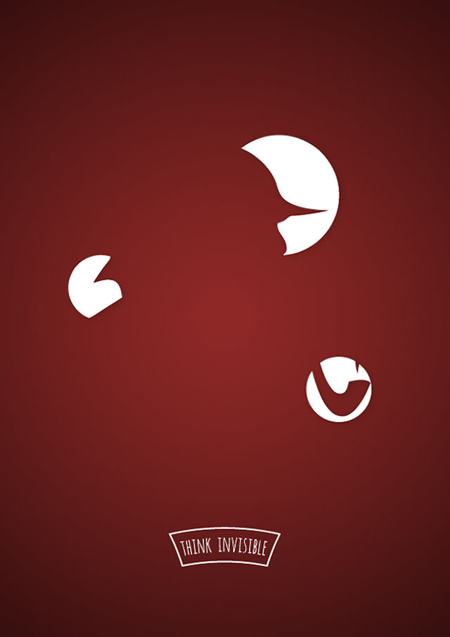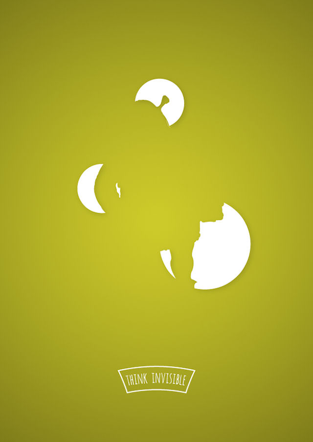 Los artistas Adri Bodor y Mark Szulyovszky crearon esta serie llamada Think Invisible ( Piense en lo invisible ) donde cada cartel es un bloque sólido de un solo color con sólo unos fragmentos que revelan una imagen oculta.