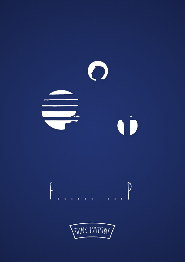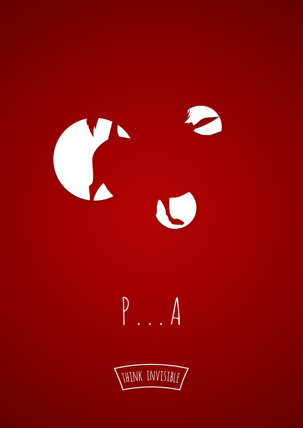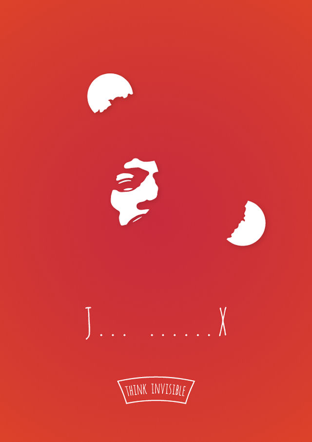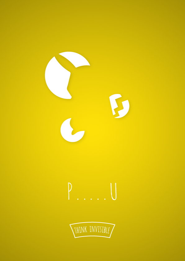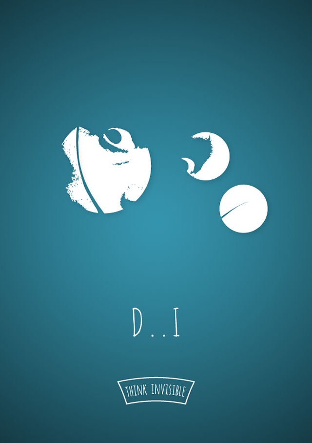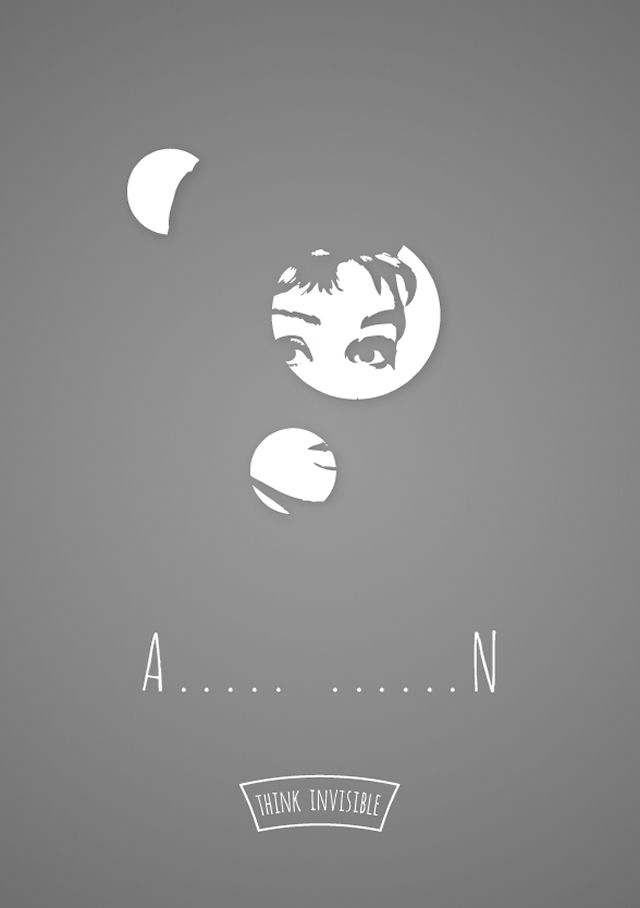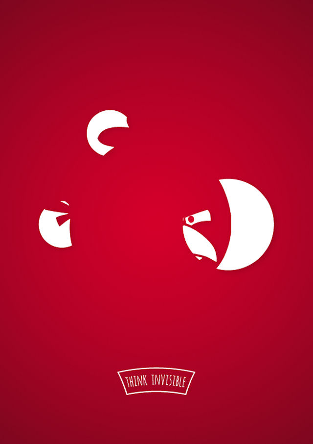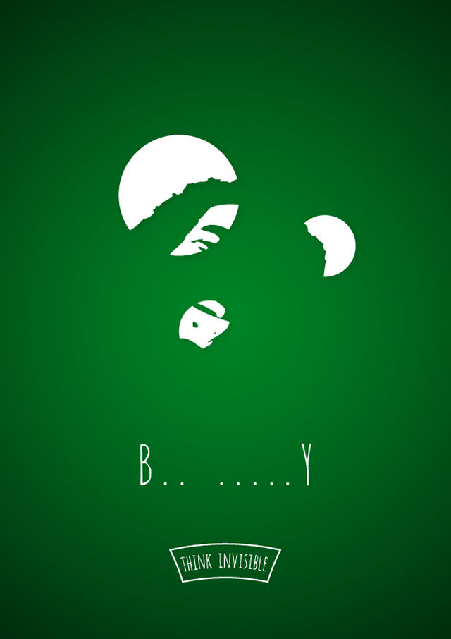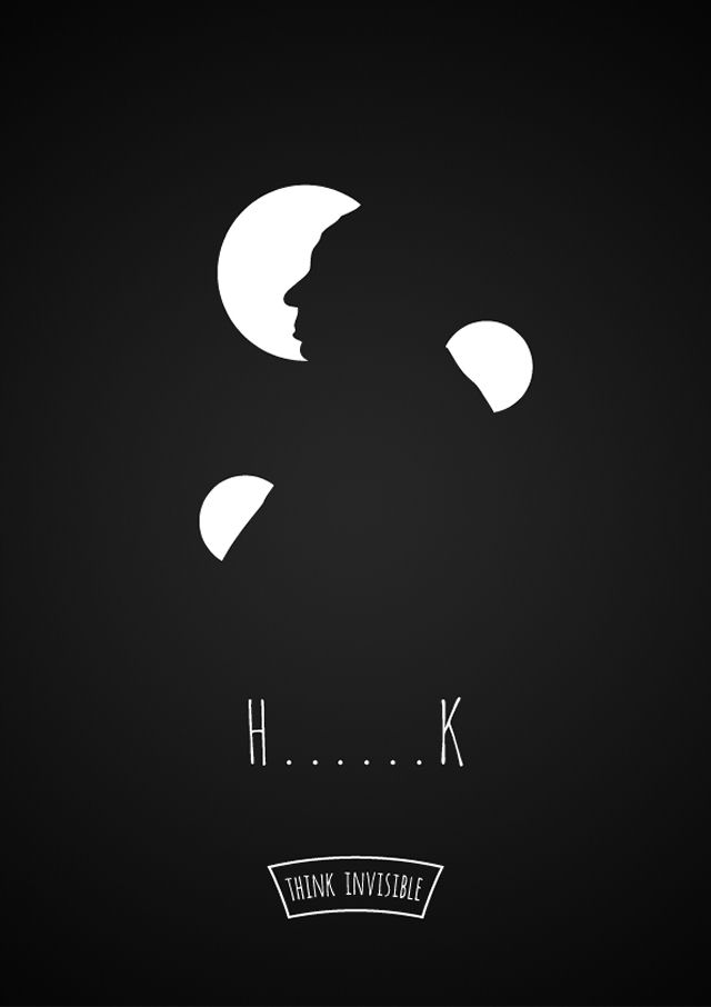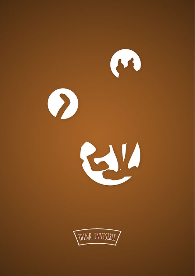 Los artistas Adri Bodor y Mark Szulyovszky crearon esta serie llamada Think Invisible ( Piense en lo invisible ) donde cada cartel es un bloque sólido de un solo color con sólo unos fragmentos que revelan una imagen oculta.