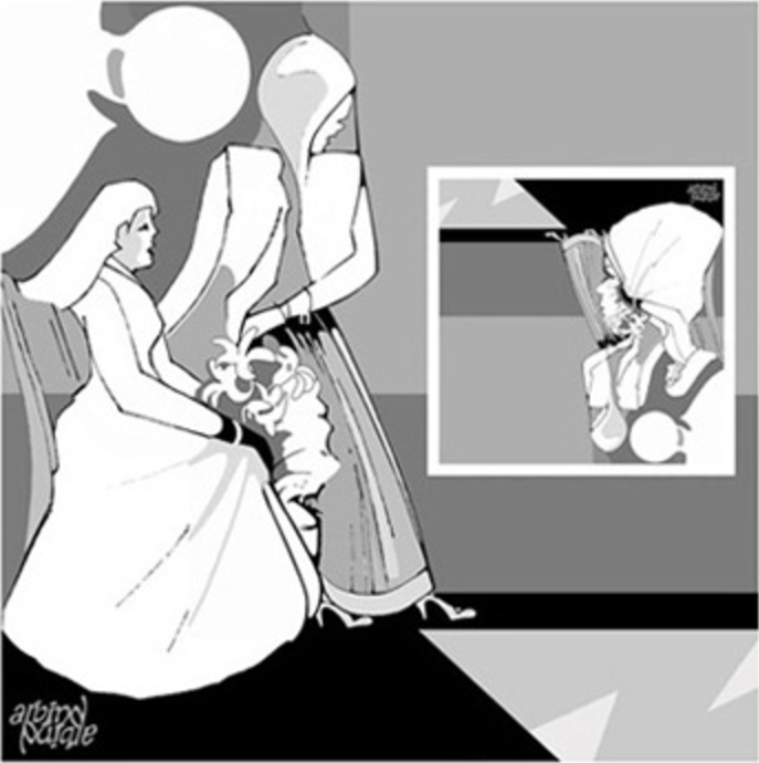 La imagen de hoy es de uan dificultad alta, salvo que se conozcan las distintas técnicas para descubrir imágenes de agudeza visual. Personalmente me resulta una de las más originales y atractivas que he visto. Es del artista Arvind Narale de origen indio asentado en Canadá, arquitecto de profesión y artista que juega con la ambigüedad de las imágenes y con el giro para sorprendernos con nuevas escenas, aunque en esta imagen no es el caso.