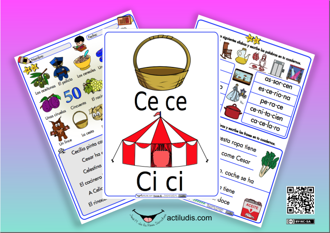 Dejamos en este artículo la letra “c” (sonido ce – ci) en grafía “IMPRENTA” para el método de lectoescritura “Actiludis”. Este paquete consta de 11 fichas de trabajo (disponibles en cuadrícula o pauta Montessori). Además de las fichas también están disponibles las imágenes del método realizadas por Vladimir Zúñiga del blog “Focaclipart” y por José Miguel de la Rosa.