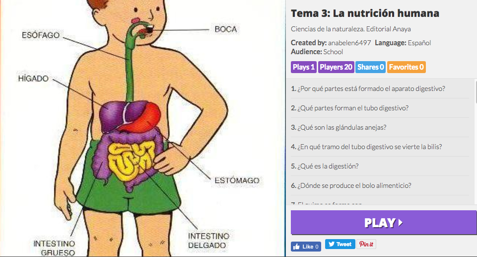 A pesar de que finalizaron sus prácticas en nuestro centro Ana Belén Baena Ariza, ha vuelto a preparar al alumnado de sexto y con la aplicación «Kahoot» una batería de preguntas para repasar los conocimientos sobre la nutrición humana.