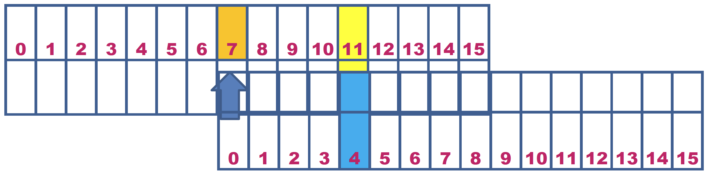 Esta actividad se hace habitualmente con dos reglas, pero con la doble recta es más cómodo porque es posible dejar una fija en la mesa y desplazar la otra sobre ella. Además, el cero de la recta que desplazas lleva una flecha para facilitar la operación. Por ejemplo en la resta 11 – 4 de la ilustración, buscamos el 11 en la recta superior, colocamos el 4 de la recta inferior sobre el 11 de la superior, y vemos cómo el cero de la recta inferior coincide con el resultado de la resta (que se marca en la recta superior). 11 – 4 = 7