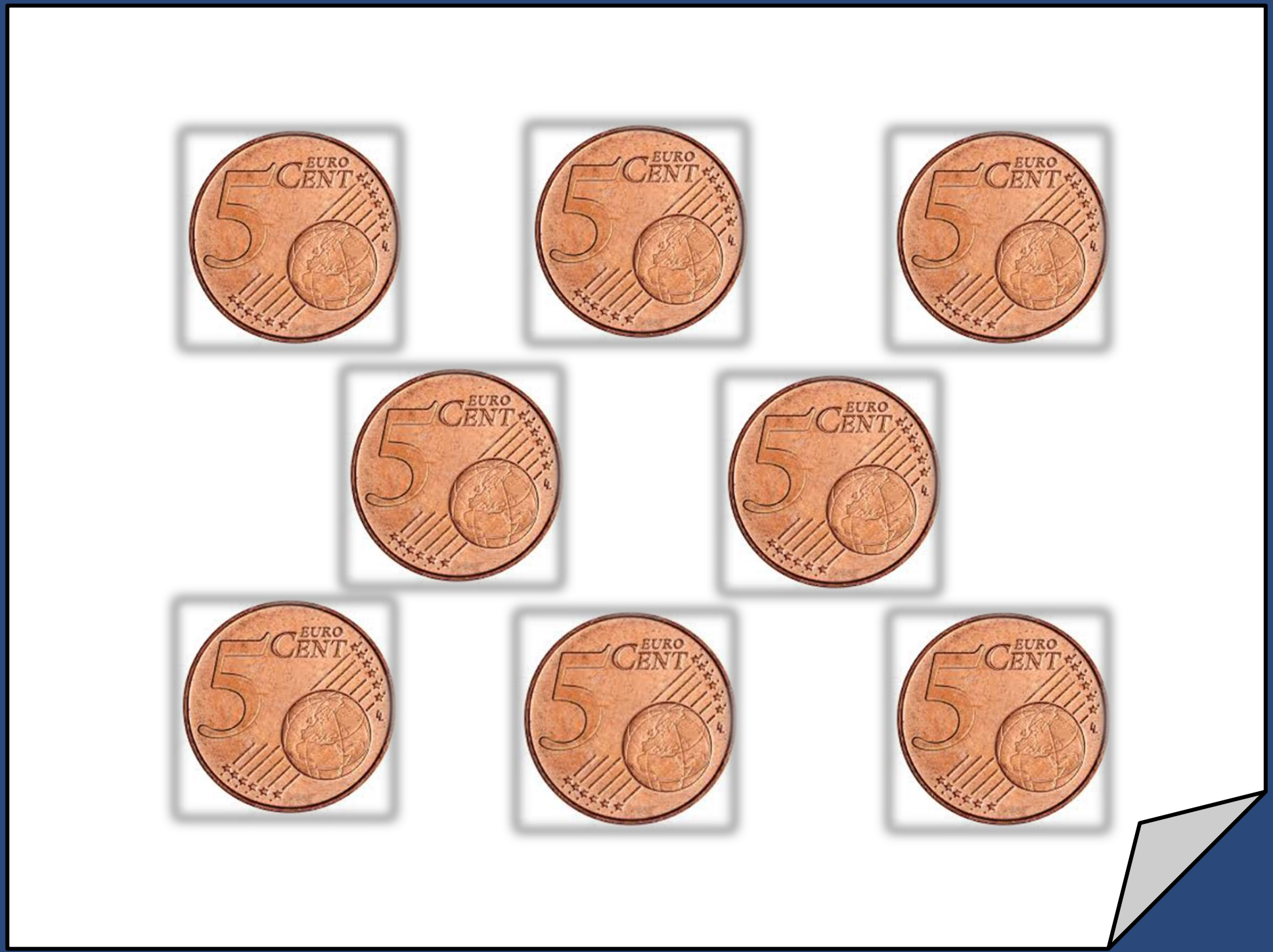 El archivo comprimido consta de un total de 17 archivos en los que se van graduando el nivel de dificultad empleando unas u otras monedas de céntimo.