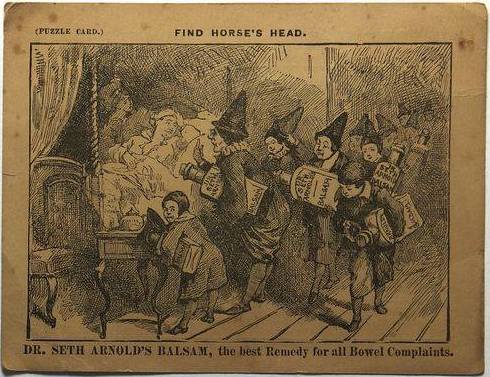 ¿Que pinta aquí un caballo? Esa sería la pregunta en un anuncio del bálsamo del «Dr Seth Arnold’s», que decía ser el mejor remedio para todas las quejas intestinales.