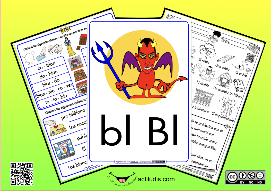 En este artículo encontrarás varias actividades muy motivadoras para el alumnado con las que trabajar palabras y oraciones con las trabada «bl» en letra de IMPRENTA con mi método de lectoescritura «Actiludis». Este paquete consta de 16 fichas de trabajo (disponibles en cuadrícula o pauta Montessori). Además de las fichas también están disponibles las imágenes del método realizadas por Vladimir Zúñiga del blog «Focaclipart» y por José Miguel de la Rosa.