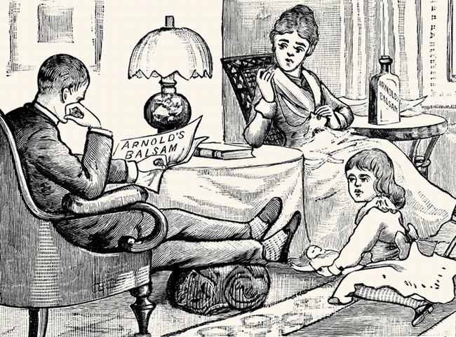 Posiblemente encuentre rápidamente a uno de ellos, pero el otro ronronea satisfecho esperando ser enocntrado. La imagen la encontré en Playbuzz.comy desconozco el autor, aunque fue creada como reclamo publicitario para «Arnold´s Balsam» de finales del siglo XVIII y principios del XIX. Se trataba del bálsamo del Dr. Seth Arnold para curas generales sirviendo tanto para una diarrea, disentería, cólicos, el cólera o incluso para todos los males de determinados órganos como el digestivos.