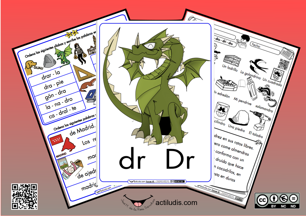 En este artículo encontrarás varias actividades muy motivadoras para el alumnado con las que trabajar palabras y oraciones con las trabada «DR» en letra de IMPRENTA con mi método de lectoescritura «Actiludis». Este paquete consta de 16 fichas de trabajo (disponibles en cuadrícula o pauta Montessori). Además de las fichas también están disponibles las imágenes del método realizadas por Vladimir Zúñiga del blog «Focaclipart» y por José Miguel de la Rosa.
