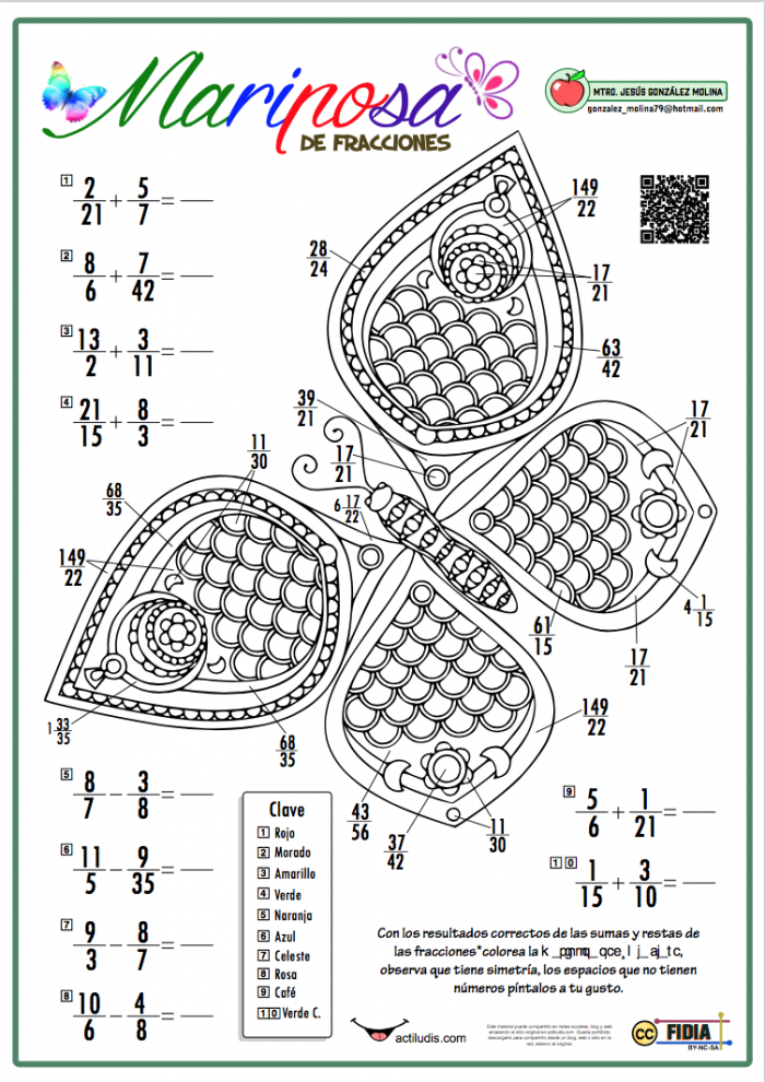 Tu estás aquí: Inicio › Suma y resta de fracciones coloreando una mariposa › Mariposa de fracciones Mariposa de fracciones Deja una respuestaTu dirección de correo electrónico no será publicada. Los campos obligatorios están marcados con *Comentario * Nombre * Correo electrónico * Web Recibir un correo electrónico con cada nueva entrada. Δ