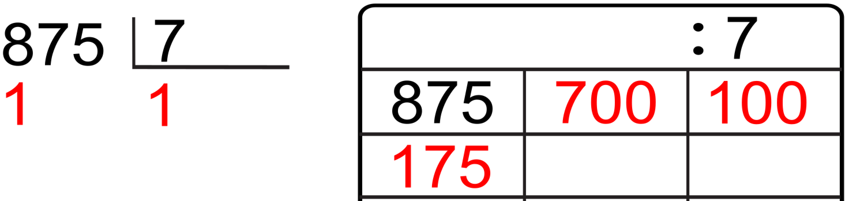 MÉTODO ABN: Este dato lo indica la primera columna donde se calcula la diferencia de 875 que teníamos y 700 que ya hemos repartido. Por tanto quedan por repartir 175€