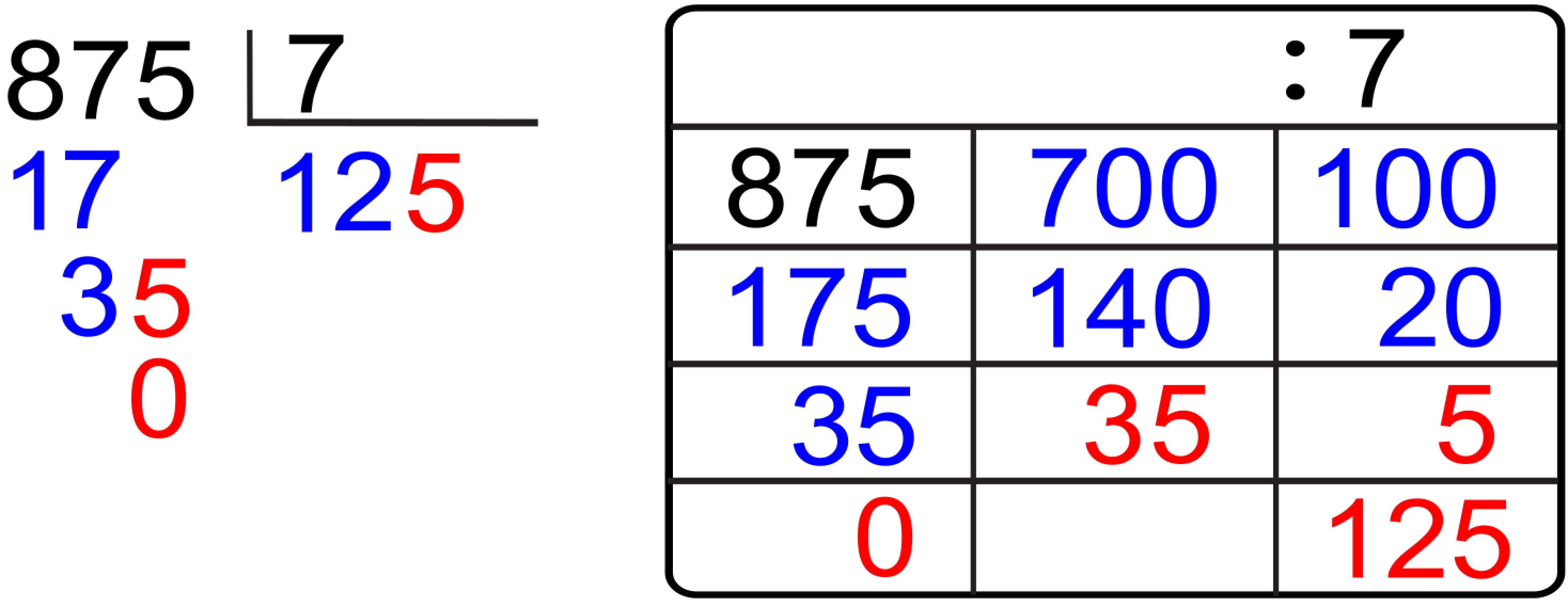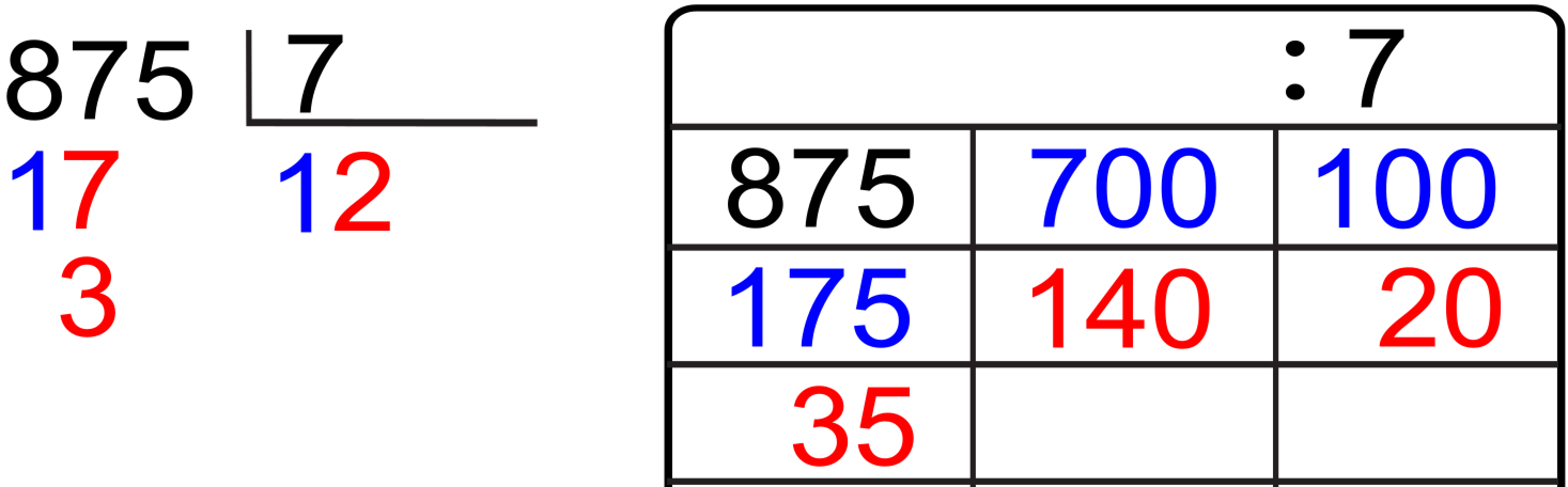 MÉTODO ABN: Este dato lo indica la primera columna donde se calcula la diferencia de 175 que aún nos queda por repartir y los 140 que acabamos de repartir. Por tanto nos quedan por repartir 35€
