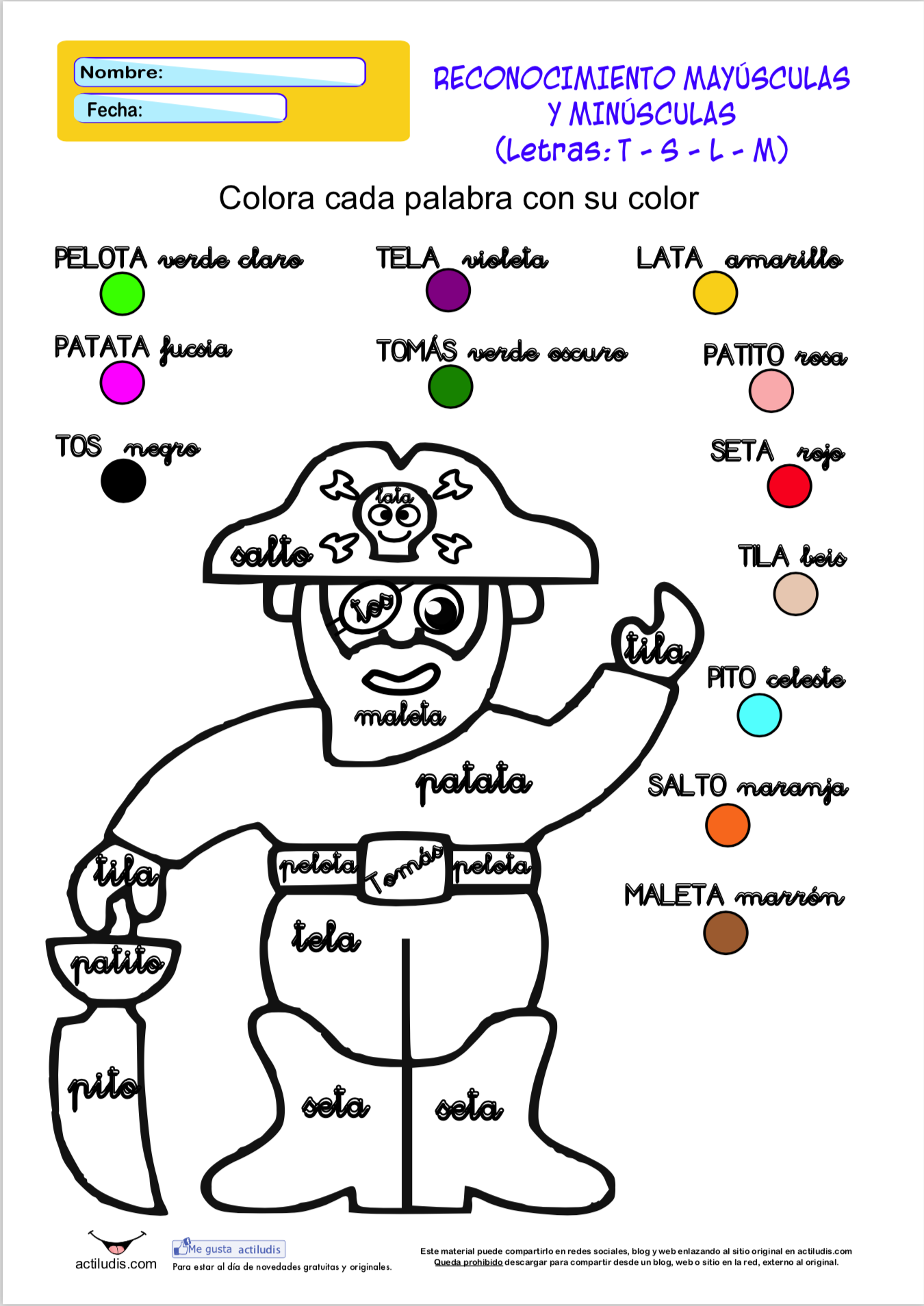 Con esta actividad trabajamos la asociación de palabras en minúsculas y mayúscula, en este caso concreto con palabras que tengan las letras: M, N, P, L, S, T