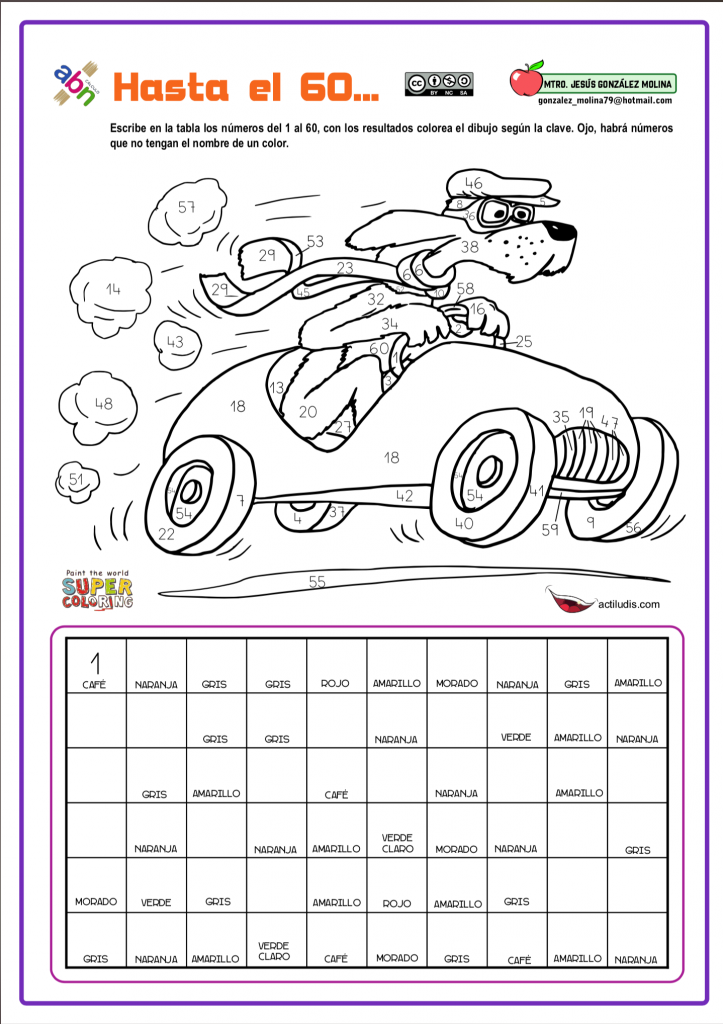 Como elemento lúdico y motivador el alumnado deberá ir coloreando el dibujo según donde caiga en la tabla el número indicado en el dibujo.